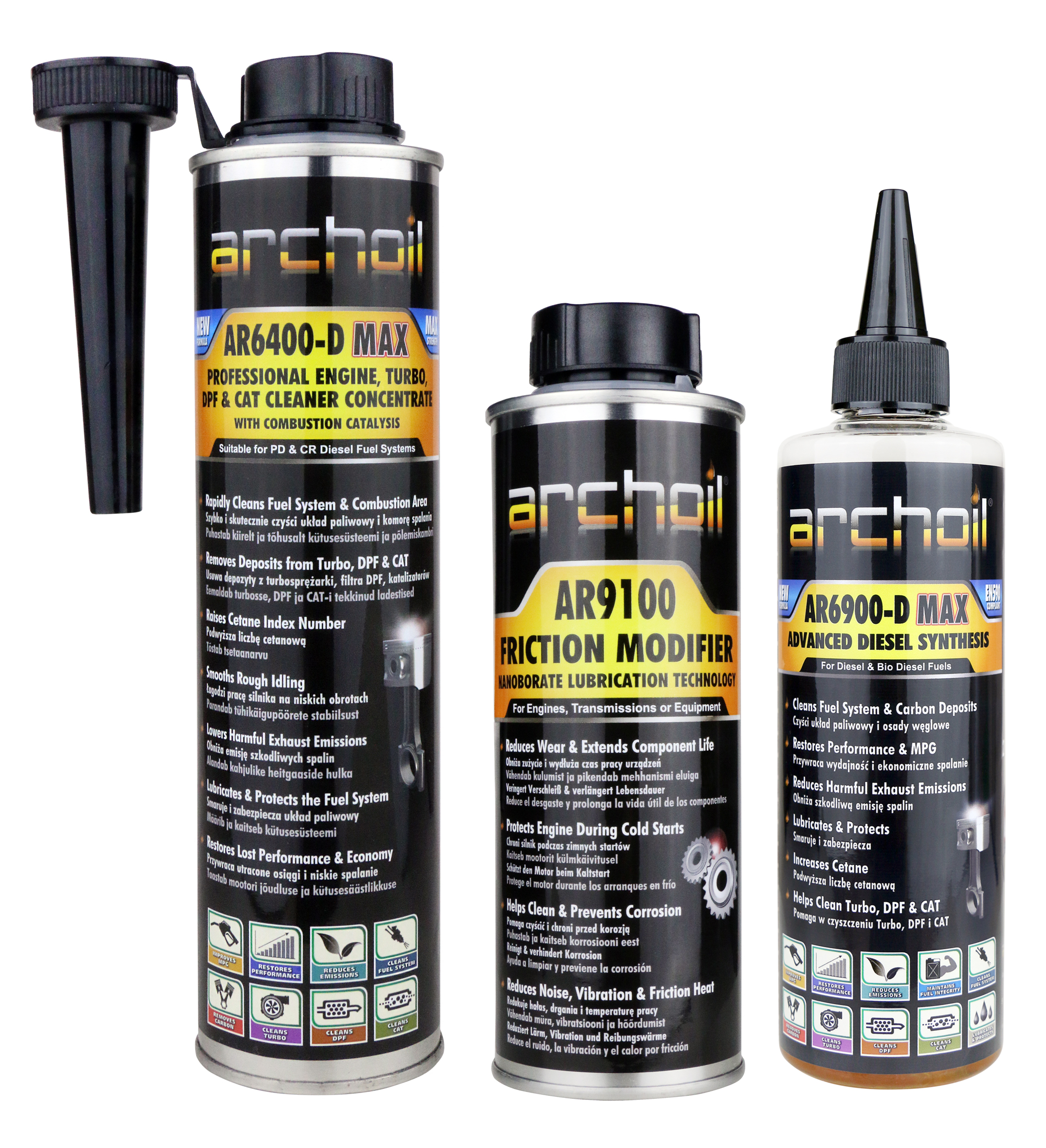 They can also cause engine warning lights or restrictive “limp home” conditions. To address these issues Archoil has released its latest high-strength diesel cleaner, AR6400-D MAX. AR6400-D MAX is a powerful next-generation all-in one fuel system, engine, turbo, DPF and CAT cleaner. It is the culmination of years of research and the decision to combine the original AR6400-D Engine Cleaner, AR6500 DPF Cleaner and AR6600 Turbo Cleaner technologies providing the greatest value and product performance into a single treatment.