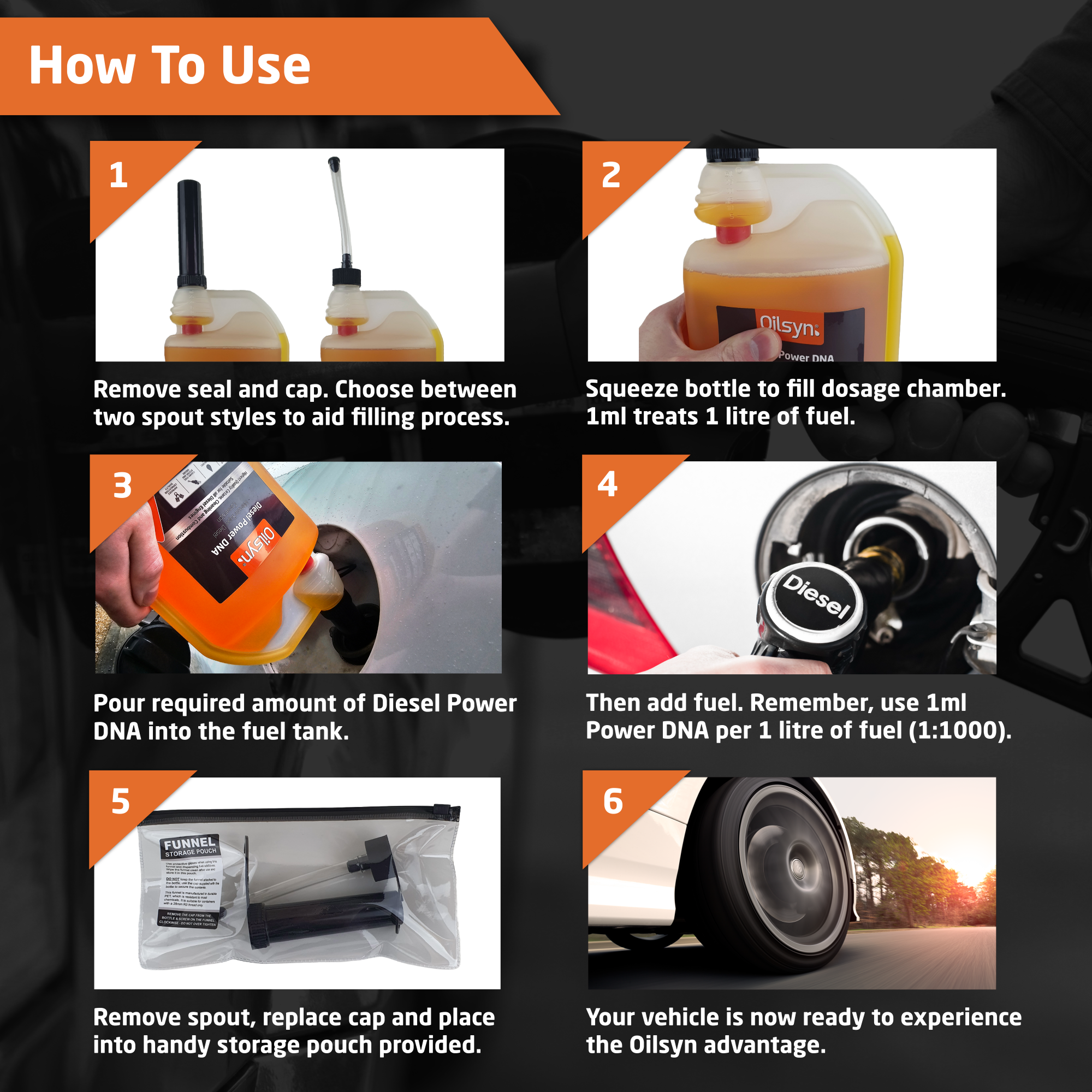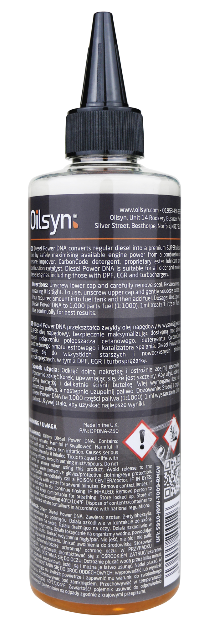 • Enhanced engine performance. Diesel Power DNA instantly converts poor quality diesel fuel into Super specification diesel, resulting in a cleaner fuel system, diesel particulate filter, catalytic converter, turbo and more.