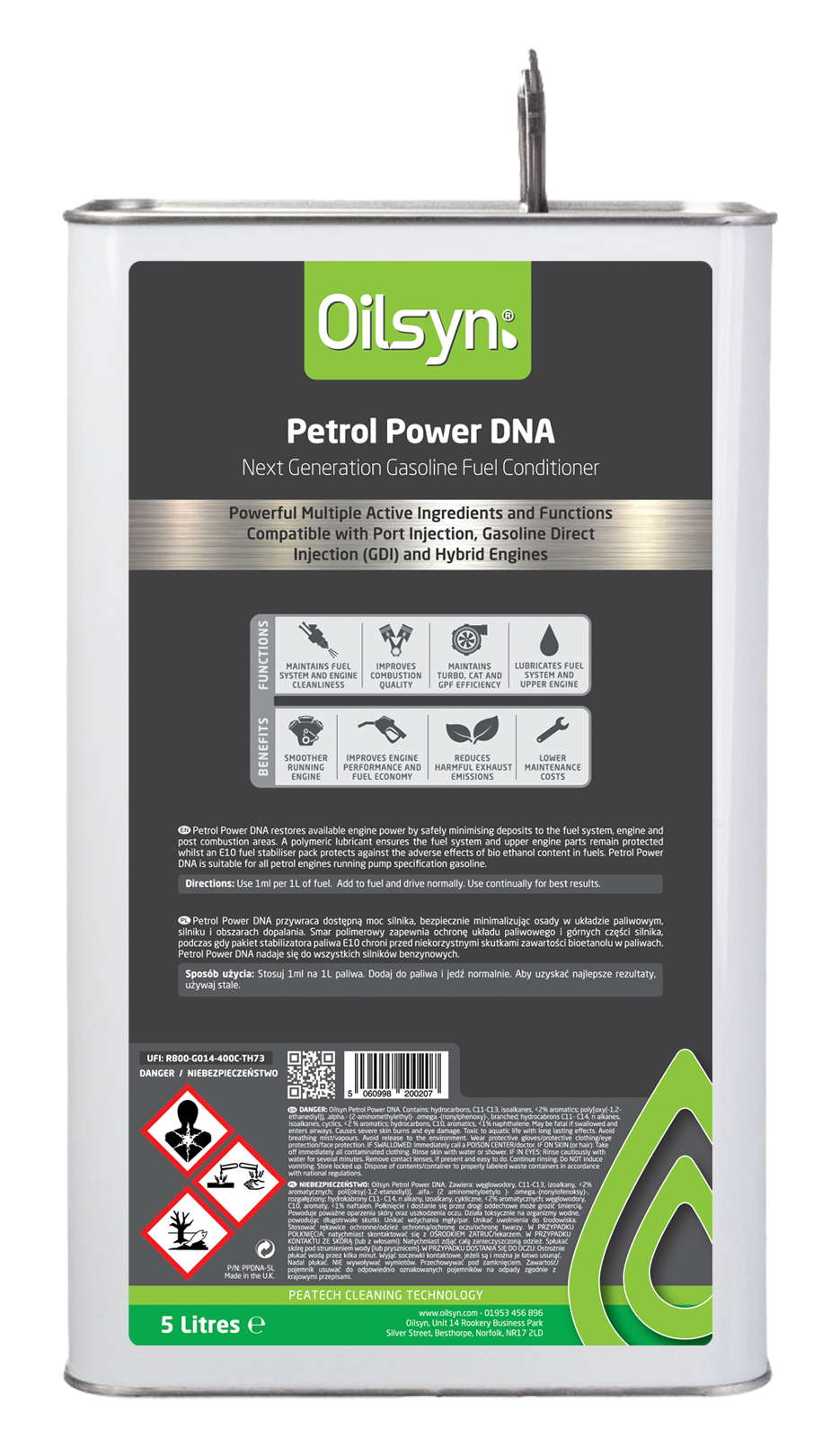 Petrol Power DNA restores available engine power by safely minimising deposits to the fuel system, combustion area, port and GDI inlet valves, gasoline particulate filter, turbo, O2 sensor and catalytic converter.