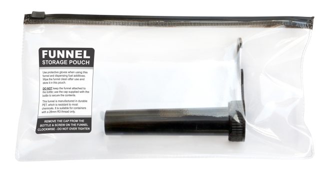 It comes with a zip storage bag to keep the spout clean and reduce unwanted odours in the vehicle.
